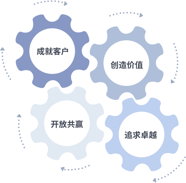 成就客户是一切决策的出发点,创造价值是衡量所有工作的标准,追求卓越是百乐森林舞会做事做人的态度,开放共赢是百乐森林舞会的格局也是最终的结果。价值观的齿轮环环相扣,推动着组织里的每个人不断向前。